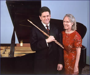 April 23, 2006"2" The final program of our twenty-fourth season will feature the unique flute, harp and piano duo "2". Mary Jane Rupert is acclaimed as a concert pianist and harpist, and has performed from New York to Beijing. Flutist Peter Bloom is a distinguished soloist and ensemble player who has appeared on more than 20 CDs including SONY Classical, Dorian, Newport Classic and many others. Together they perform stunning chamber music and they have two critically acclaimed CDs on North Star Records. |